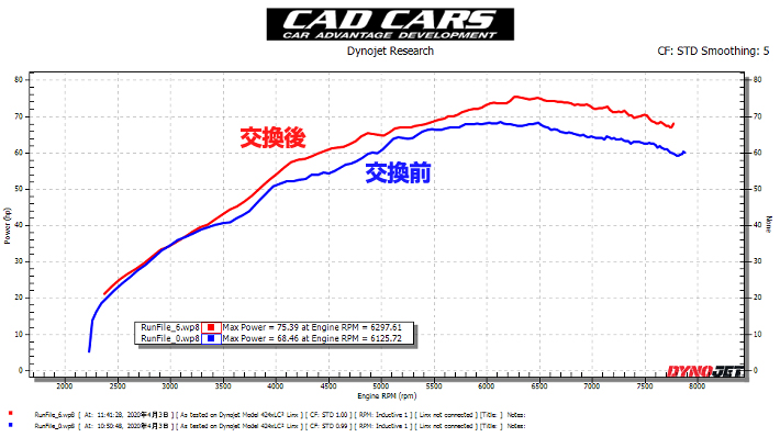 ■計測馬力68.46ps ⇒ 75.39ps