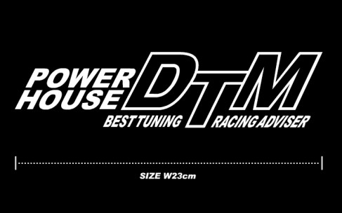 POWERHOUSE D.T.Mのベーシックロゴを横幅23cmのエンブレムスタイルであしらった切り文字タイプのカッティングデカールです。